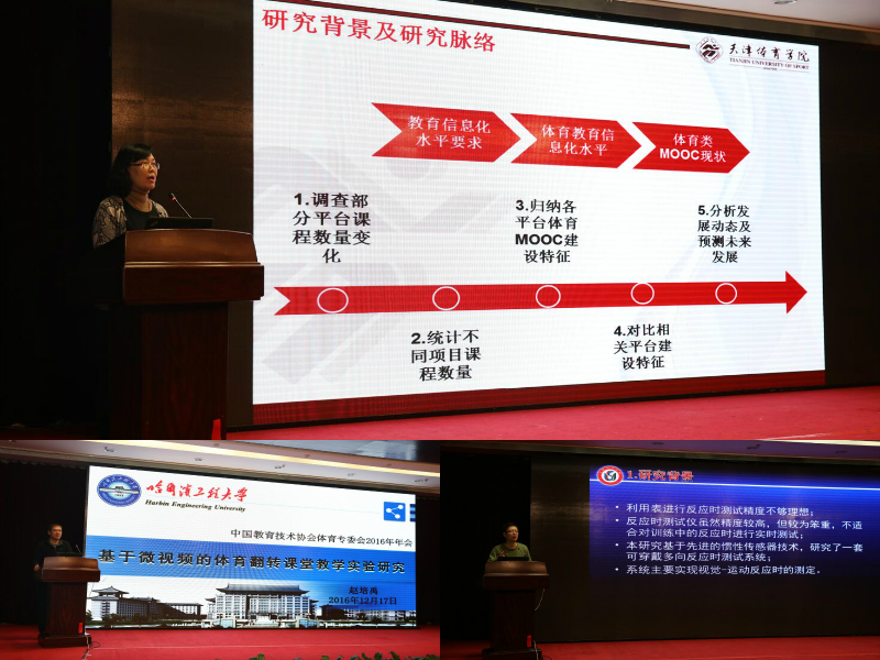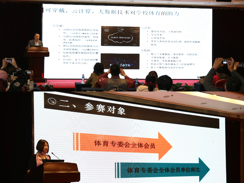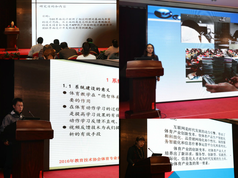 体育专委会秘书长刘玫瑾教授从(1)持之以恒的做好大学体育教育中信息技术应用与推进工作,(2)体育专委会的十三五课题开展,(3)体育教育与信息技术论文撰写、微课等学术交流事宜的进一步规范,(4)下一步工作思考,四个方面进行了专委会4年来的工作进行了总结。2016年的会议主题贯穿互联网+体育、大数据研究、微学习、MOOC平台、云技术、移动教育、3D技术与可穿戴设备、教学与研究管理平台等现代教育技术前沿,进行了多种形式的主题报告、学术交流以及成果评比。