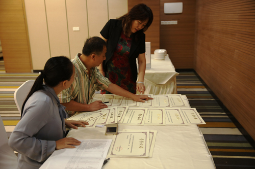 之后,进行了第一届体育微课大赛的颁奖仪式,由太原理工大学杨龙教授主持。进行了论文颁奖仪式,由辽宁石油化工大学崔凤海老师主持,评审专家为获奖者颁发证书。